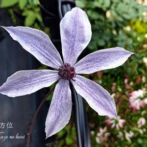 クレマチス 風の方位 雨上がりの晴天を喜ぶように開花しました 白に薄紫の筋が清楚で 流星より少しだけ大きめ 爽やかなイメージです クレマチス開花リレーがはじまっています