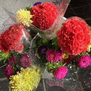 ケイトウ 今晩、お墓🪦参りする予定だったのに☂️。 蝋燭🕯️やお線香の火も消えてしまうなぁ…なんて考えていたけど、供花のお花をすっかり忘れていて、早く行かないと無くなる❗️😅と思っていたら、なんと玄関にお花が❗️😃 誰かなぁと息子に聞くと、同級生のお寺さんが沢山届くから取りに来いと頂いたとか😂 なんてグッドタイミング❗️😃 私からお届けしなくてはならなのに… ありがたく使わせていただきます🙏