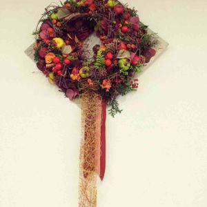 . . 7年程前に作った 木ノ実のリース . いろいろな アレンジメントのリースを作りましたが コレは グルーガンを使わない作り方の トロッケンクランツリース . . 久しぶりに作ったら 作れるかな?笑 . .