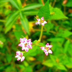 【白花桜蓼】《タデ科》 花言葉 「優雅な清楚さ」「愛くるしい」「幸運」「幸運が来る」 雌雄異株で雄株は雄しべが長く 雌株は雌しべの方が長い 長花柱花という 花びらのように見える部分は 萼(がく)