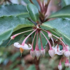 【万両の花】 こちらも先月末ですが……。 その後も新しい葉っぱ🌿がにょきにょきと元気に伸びています。