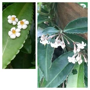 今の時期、マンリョウ(万両)の花🌼が見られます。 7月に約1cmの小花をたくさん付け、冬には赤い実がなります✨ 花は地味で小さく、あまり目立ちません😉 マンリョウは、正月用の縁起木ですが、花を見るのは今でしょう😃