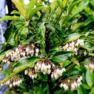 #万両 花が咲き始めました。 いつも庭の隅にいる子なので花を見過ごすことが多いのですが、、