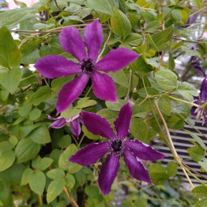 23.3℃🌅/32℃🌤️→🌧️予報 クレマチス、2番花パト🌿 ナイトバード、なんだか和風💜 流星とマリアルージュは、咲き始まったばかりなのにすでに散りはじめるコも。 ともにルーツポーチで、この暑さ乾きやすすぎるのかなぁ💦 1️⃣2️⃣ナイトバード 3️⃣流星 4️⃣マリアルージュ 5️⃣オブスキュア