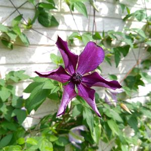 クレマチス ナイトバード 今年、4月に購入。 花が咲くのを楽しみしてたら、初めて花が咲いた。 えっ😲、写真と違うような...❔🤔💦 皆さんの投稿見ると👀、薄いのもあるけど、やはり濃い目の紫に吹きかけたような感じの花びら。 株が充実すると濃い色合いになるのかな? 流星にもよく似てる気がするわ。