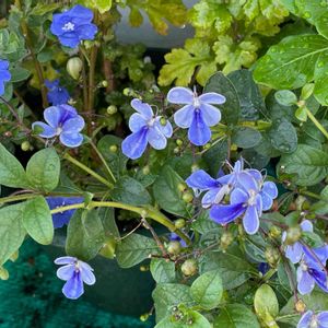 今日の小さな庭 何度も 何度も 咲いては その数も増え この熱暑の中 今年はルリマツリの優しい色に 癒されています🤗🟦 💓💗・:*+.\(( °ω° ))/.:+💗💓
