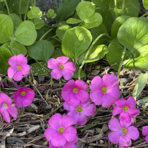 2日続きの晴天です 大輪のはなかたばみ🌸🌸 ハートが3枚の黄緑の葉っぱも キュートです 日陰で茎が寝てますが、、、😉