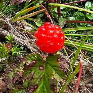 赤い実…タカネバラの果実でしょうか❔ 黒い実はガンコウランの果実で美味しい😋