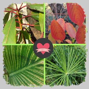 🏷8日は葉っぱの発表会 に… 1🟢ユズリハ↖️ 2❤️桜の紅葉…↗️ 3🌿カンナ…🐯 ベンガルタイガー↙️ 4💚シュロ↘️ 昨日出逢った…1.2.4. 3.は…先日!!出逢いました…珍しい…🌿✨