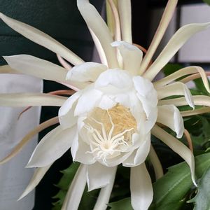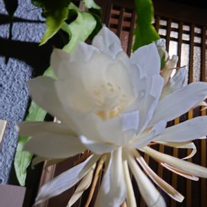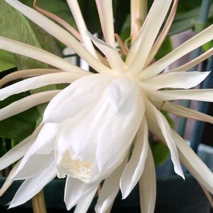 今日のお花 月下美人… 8月に訪れた… 大阪鶴見花博記念公園…温室に… サボテン科 クジャクサボテン属 メキシコや中米を…原産地とし…草丈は1〜2m… 夜に開花した白い花は朝には萎みます…💧… 良い香り…がします…ね🤍🤍🤍🤍🤍🤍🌿… 🏷白い貴婦人✨ 🏷純白マニア 🏷おしゃれな土曜日♪