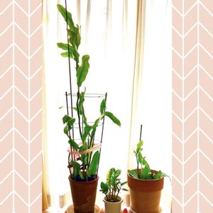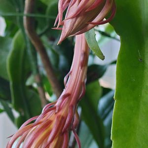 冬の間、 カーテンの向こうのなんちゃって温室で スクスクと育った月下美人 秋に部屋へ取り込んだ時には あんどんの1番上の段に届かなかったのが 今は倍くらい大きくなった この場所が好きなんやろね❣️ このまま室内で育てるかな😆