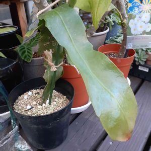 本日の花🤚月下美人🌙🌱 株分けした物を娘が職場から頂きお持ち帰りしました😊🎶 お分け頂いた方が仰るには後2年花は🌸咲かないそうです😁 いつの日か花弁が着く日が楽しみですね🤗