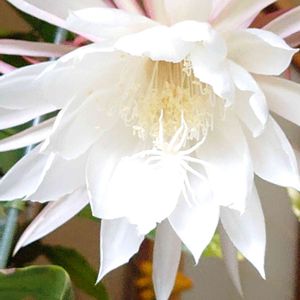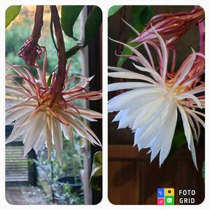 今日のお花「ゲッカビジン」(月下美人) 🌿🤍 なんと昨年11月21日に咲きました🤗💕 現在蕾が2個成長中です ちゃんと咲きますように🙏 🏷花の金曜日 に参加させていただきます🙇