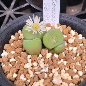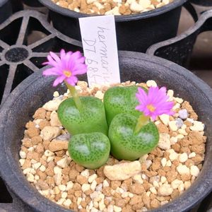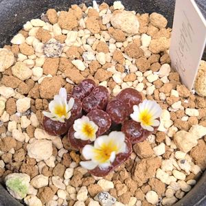 ブルゲリとHot Lips、深窓玉、名前不明のリトープス ブルゲリは濃いピンク(マゼンタ系)と白のバイカラーのお花で可愛らしいし、リトープスは最近は白花が咲く率が上がってきているのが嬉しいです😆 名前不明のリトープス、私としてはStorms's Snowcap(白花日輪玉)じゃないかと思っているのですが、特定出来ません😓💦 以前育てていて☆になってしまったStorms's Snowcapに似ているんだけどな〜😑