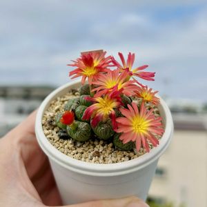 おはよᕬᕬ ฅ どうしても種が欲しくて苗を島田さんに選んで貰った子です💗 蕾の状態、交雑の事など大変勉強になりました…φ( •ω•́ )メモメモ また島田さんにお会いしたいなぁ(⸝⸝o̴̶̷᷄ ·̭ o̴̶̷̥᷅⸝⸝)♡⃛ ̖́- リトープスの事もだけどまたたわいも無いお話して大笑いしたいです🥰 #群仙園