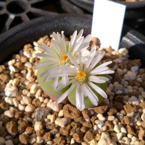 先日群仙園で見たグリーンのボディに白いお花のイタリア生まれのリトープス 高くて諦めたけど素敵だったなぁと思ったいたら近所のホームセンターで出会ってしまいました😆✨ これ400円だし、漢字の名前(麗春玉)だし違うかもと思いながらもゲット 調べたらやっぱり別ものでした😝💦 でもかわいいから良し👍 お迎えしたての子と種まきしたのはカゴにまとめて朝から仕事帰るまでお外に、夜はお部屋に入れてます♬ ずっと我が家にいる子達は軒下の棚で24時間お外 みんな立派に成長していて嬉しい😆💕