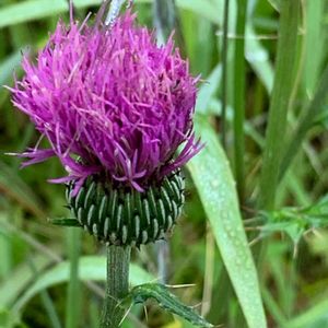 昨日 山あいの道を車で走っていたら アザミの花が沢山咲いていました💜 種類はわかりませんが 赤紫の花色が道路脇を彩って緑深くなってきた山あいにアクセントを添えていました💜