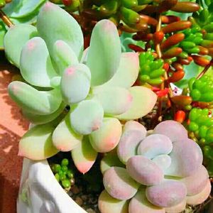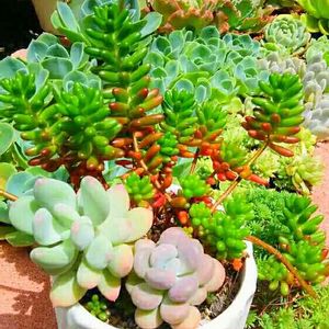 こんにちは(*´∀`)✨✨ モリモリ多肉花壇の前で、 モリモリ虹の玉さん❤ 桃美人さん❤ 星美人さん❤