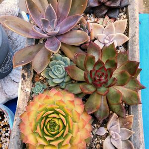 多肉事2023.9.27 瀕死のセンペル、ゴールドナゲットとベリーブルースを形が整うまで外葉を外して(小さくなっちゃったぁー)寄せて相乗効果がんばれ おまけに前方にジョビバルバも… 多頭ジョビバルバ(右)をバラバラに植えかえ。小さい鉢にやり直し決定だわ…