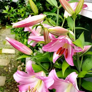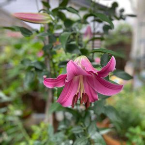 こちらは、昨年 溢れる程に花を咲かせたピンクカサブランカ「マレロ」 今年は少し色白サンですがたくさん蕾も控えています。 昨年、たくさん咲きすぎたので、今年は期待薄かな〜なんて思ってましたが、植木鉢の脇をはみ出す様に茎が両方からせり出し😲💦慌ててひと回り大きめ植木鉢に植え替えはしました😅