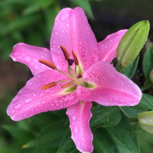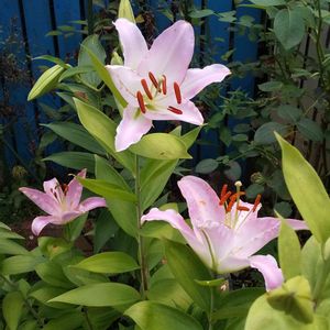 カサブランカピンク 一昨年あしかがフラワーパークで買ってきた球根3年目。 年々花は小さくなるし花数も減ります。 特に今年は分球してしまって茎も細め。 毎年立派に咲かせるの、私には無理😓