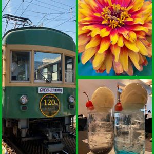 🏷 コラージュ仲間達 okiさん 参加させて頂きます 横浜から足を伸ばし初めて憧れの江ノ電乗りました。 シラス屋さんの多肉植物がステキでした