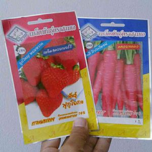今朝チェンマイのカムティアン園芸市場で買った種です。 この人参、画像からするとどう見たって関西一円では知られている京人参ではないか?と言うわけで即決です。 イチゴは、この袋には「甘くて大きく、香りが良い福岡の品種」と書かれています。 ってあまおうかよ〜! でも果物を種から育てると、先祖返りして野生種と殆ど同じになる事が多いので、果たしてあまおうになってくれるのか?それともワイルドストロベリーなのか? それもともかく、たぶん採種業者はあまおうを、もうイヤになるくらい食べさせられたんだろうな〜。😂😆😅