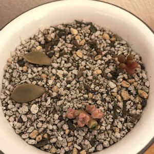 祖母の庭から連れてきたグリーンネックレス。地面に根付いて埃をかぶっていた子で、粒も小さい。 良くも悪くも何の変化もないと思っていたけど、ついに新芽が出てきました!ちゃんと育ってくれてたんだね😭ベランダに出したのがよかったのかな? 朧月の赤ちゃんも葉挿しも、順調に成長しています! 100均でやっとマクロレンズを発見したので、小さな子たちを撮ることができました🍀✨大きくなってね😊