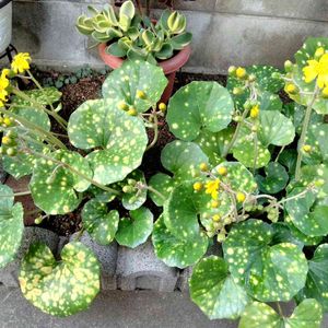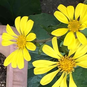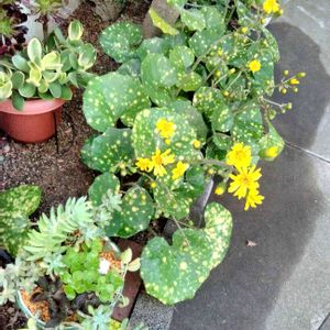お花はもう少しで終わり💛💛💛 鉢のツワブキは小さい。 種が溢れて所々に大きなツワブキ😱💦 こんなに簡単に増えるとは…💦