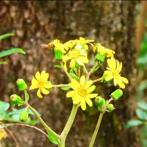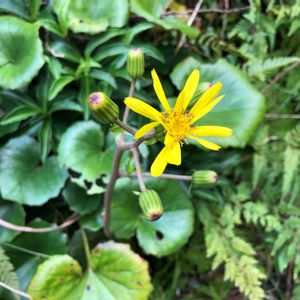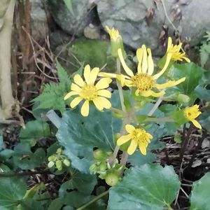 今季初見です。 ツワブキの花 山歩きで、午前中に通りがかりのときは咲いてなかったけど、 午後に通るとさいてました‼️