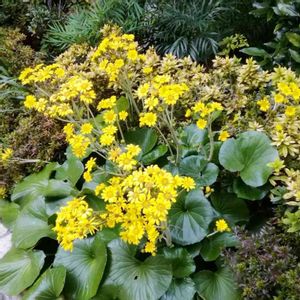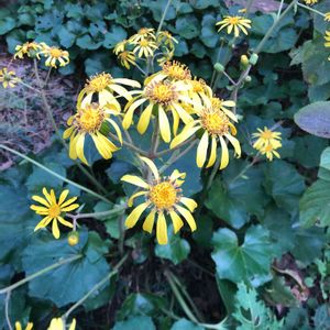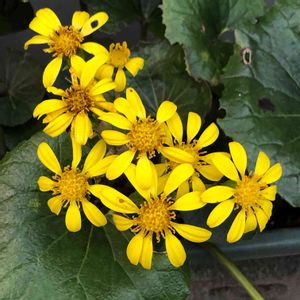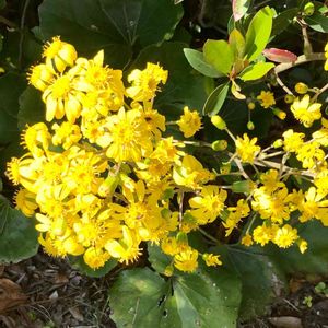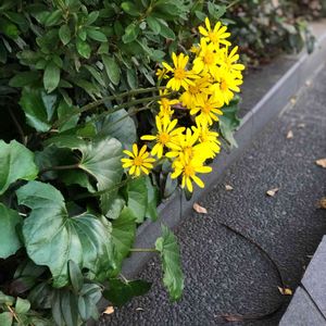 ツワブキ(石蕗)が、あちらこちらで明るく愛らしい花を咲かせております✨ 1枚めのツワブキは花壇のツワブキで、お花も葉も丸々としておりました🌻 キク科の植物で、葉と茎は食することができ、白色などもあるとのことですが、街角では黄色にしか出会えずにおります。