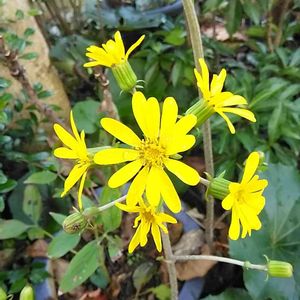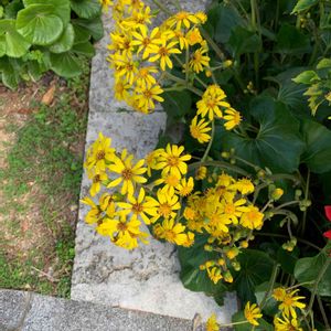 ツワブキの黄色い花🌼 冬の花が少ない時に咲くきれいな花。 庭が華やかな感じになります。