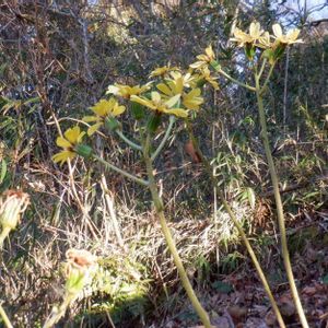 おはようございます。 出先で咲いていた ツワブキの花。 太陽のひかりをあび、輝くようでした。