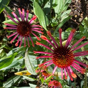 エキナセア ストロベリーキャップ🍓 可愛い〜💗💗💜 奥はガイラルディア グレープセンセーション 種が飛んで増え過ぎて最近は間引いてます😅 結構長い間咲いてくれて助かるんだけど 花柄詰みしても間に合わずどんどん増える😆