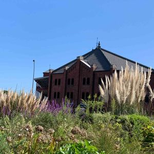 青空の下🩵パンパスグラスがモフモフで、とても爽やかな秋晴れの景色です🎶🍁 バックの建物は横浜の赤レンガ倉庫です✨ 🏷️木曜モフモフ 🏷️2023秋の十草(風景)で参加させていただきます✨2個目です✨ パンパスグラス 和名シロガネヨシ イネ科 シロガネヨシ属 ススキに似た多年草