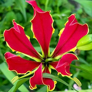 グロリオサ 鮮やかな花色と独特の花姿が特徴的ですが、強い毒性を示すコルヒチンという毒が植物全体に含まれていて、ヤマイモと間違って食べることのないように注意が必要です!