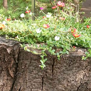 遊歩道の桜の切り株のうろの中に咲かせているポーチェラカ元気に咲くポーチェラカ素敵ですね💞