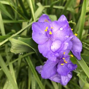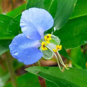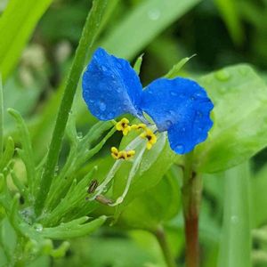 雨の水滴がのっているツユクサ♪綺麗だと感じます(^^)