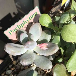 パキフィツム '月美人' Pachyphytum oviferum(maybe bracteosum) 'Elaine' いとうグリーン産 名前はタグのものです 久々に登場の月美人 星美人(oviferum)の園芸品種とされていますが何がどう違うのかサッパリです 粉々しさはそのままでベースの葉色が紅葉?で色んな色になっていて、パステル調のパレットのようです なかなかいい季節です 京美人も桃美人もなかなかいい色してますよ