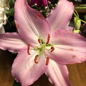 ピンクのユリ(Pink Lily) 花言葉「wealth and prosperity」 (富と繁栄)💸💵💴💶💷💰 「ソルボンヌ」(ピンクや赤) ソルボンヌは鮮やかなピンク地に白い縁取りが入り、甘い香りと波打つ花びらが特徴的なピンク系の品種です〜「白いカサブランカ、ピンクのソルボンヌ」と言われるほどピンク系では人気があります。👍⸜🌷︎⸝