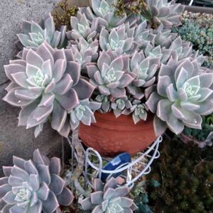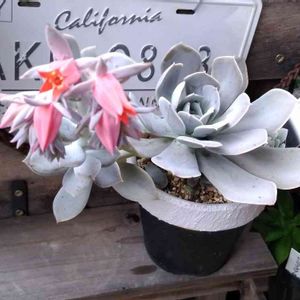 今日の休みは 多肉事してまーす。 が…腰痛で思うように進まんのです😥 そんな中で、名前ど忘れしてますが… 赤いお花を咲かせた子が❣️ 下葉もぎもぎしてたら かなり根詰まりした子が…植え替えもしないといけないよね…😪 わかってますが〜😅 中々進みません😑