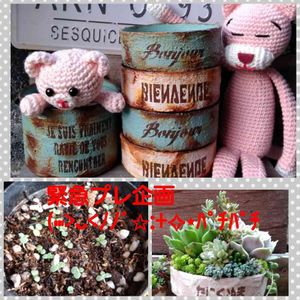 突然ですが〜 カット苗&リメ缶プレ企画いたしまーす。 リメ缶は右側ツナ缶サイズの物 ピンク、ブルー 各一名様に😊 カット苗は発送前にカットしたいと思いますので宜しくお願いしまーす😙 イメージは前プレ企画かな? っというのも… 暴れ多肉をどーにかしなければ!なのですが 育ててくださる方宜しくです🤗 我が家 普及種しかいないので、物珍しいものはいません🤭 期間 この投稿から 日曜日29日まで 応募条件 今回は〜 フォロワー様限定! 今からでも(。•ᴗ-) օҡ リメ缶、多肉素人の物なので…それでも大丈夫な方♥ ↑↑ これ大事🤣🤣 今後も仲良くしてくださる方(笑) LINE、インスタを繋いでくださる方 以上 応募方法 コメント欄に リメ缶のカラーを明記してくださいませ😆 私がイイねした時点で 応募完了といたします。 後日アプリにて抽選後、 当選発表します みなさま 宜しくお願いします …┣¨キ(*゚д゚*)┣¨キ 3日前に実生っ子ひっくり返した…拾い集めてちまちま植え替えたよ…大丈夫かな?😪