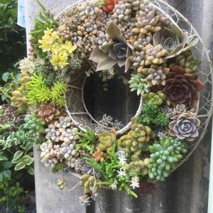 少し前に作り根を張らせてました。 やっとこうして掛けて楽しめるように なりました。 そしたら時が過ぎ色が冷めちゃったよー 多肉ちゃん楽しませてくれてありがとう😊