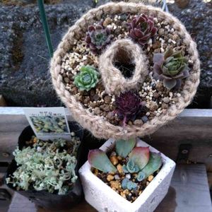 我が家の葉挿しっ子の チワワエンシス♥ だいぶ大きくなってきた😆 mayumaruさんからいただいた麻ひもリースに そらちゃんからいただいたセンペルさんを植えました〜😚😚 隙間にセダム入れようかな〜?😍 玉蛋白さんも すぐ植え替えようと思いまーす。 落ちるの覚悟で (o´罒`o)ニヒヒ♡ 通信制限ヤバイので帰ったら拝見しに行きまーす((o(。>ω<。)o))