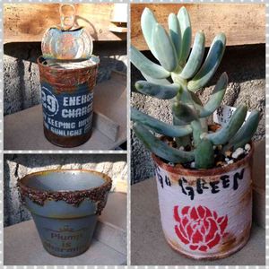 きょーのお休みは 存分にリメ缶リメ鉢仕上げられて、大満足😆 明日からの連勤がんばれるわ〜😊 そして… お待たせしちゃいました…|ωΦ)ฅ🐾 前回のプレ企画で 私の鉢を嫁にもらってくれたかっこさんから 頂いた ドウセナとウスネオイデスさん😙 実はドラセナを合わせる鉢がなく… やっと満足の行くものができました! ちゃんと植え替えたら、ハンドメイドの素敵なビーサンと一緒にpicしまーす😍