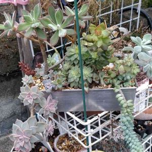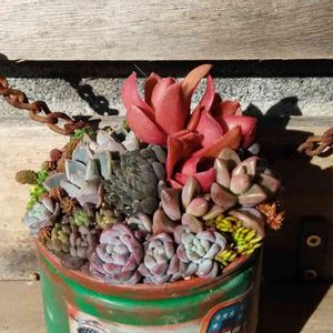 去年妹から頼まれていた リメ缶寄せ植え プレゼントする方のおこちゃまがプリントされているので上だけ(笑) 我が家のハウス内は まー伸びる伸びる 早く外出さないと… 原型なくなるょ…😢 そんな状態の中使えそうな子だけカットして寄せてみました😆 喜んでもらえるといいね😙