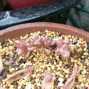 葉挿し子ちゃんたちも 雨に濡れてつやつや☆ こんなに小さくても 可愛い(*´˘`*)♡