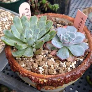 またまた台風ですね… 各地大きな被害が出ませんように🙏 私もこれから多肉を移動させなければ…一応 やっと出来た寄せ植え❣️寄せ植えたのしいのよね(≧∇≦) あっピック刺すのわすれちゃった😥
