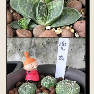 お庭パトロール🏃🏻♀️ ① ⬆️恐竜 柄がザウルスくん ⬇️兜丸 あまり変化ないけれど 小さいカボチャみたい😁 🏷️ムーミンの日 ② 🏷️月曜日にビタミンカラー 雨の中 咲いてる カランコエ🟠 サンビリーバブル ③京ちゅらか 先日です 雨だから今日は咲きません😅