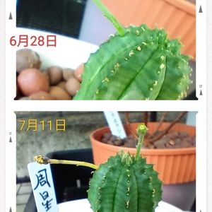 🏷️棒の日 ① 棒のような多肉さん 心待ちにしてたお花は ⬆️6月28日の どうもこれがピーク 思ってたお花と違う 小さな黄色いお花🌼 ピントがあってない😅 ⬇️今朝みたら またまた 新しいツノが 今度はちゃんと 撮れるかな😆 ② 🏷️金曜日の蕾たち 京ちゅらか ネメシアネシア 八重咲き トレニア ローズらしいけれど どうみても紫色😁 ③ ⬆️クライミングサンパラソル 大輪 ⬇️二年目のサンパラソル 普通 今朝ツボミを四つくらい発見 私が見放したと思って あわてて咲き出したかな😆 葉っぱの大きさ質感 茎の太さなどに違いがあります